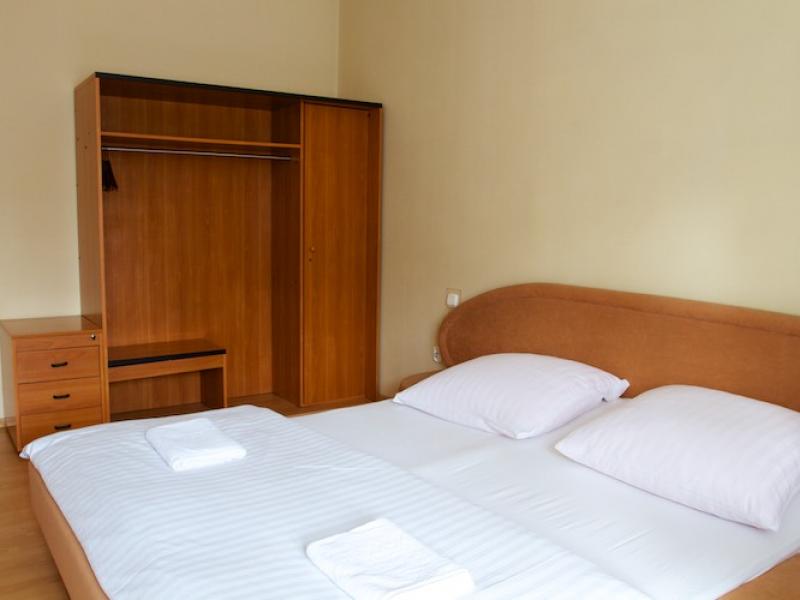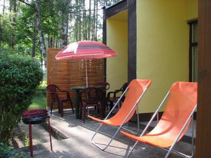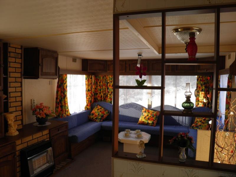 W każdym domku znajduje się 1 pokój 2 rozkladane wersalkami oraz łazienka oddzielona ścianką.
